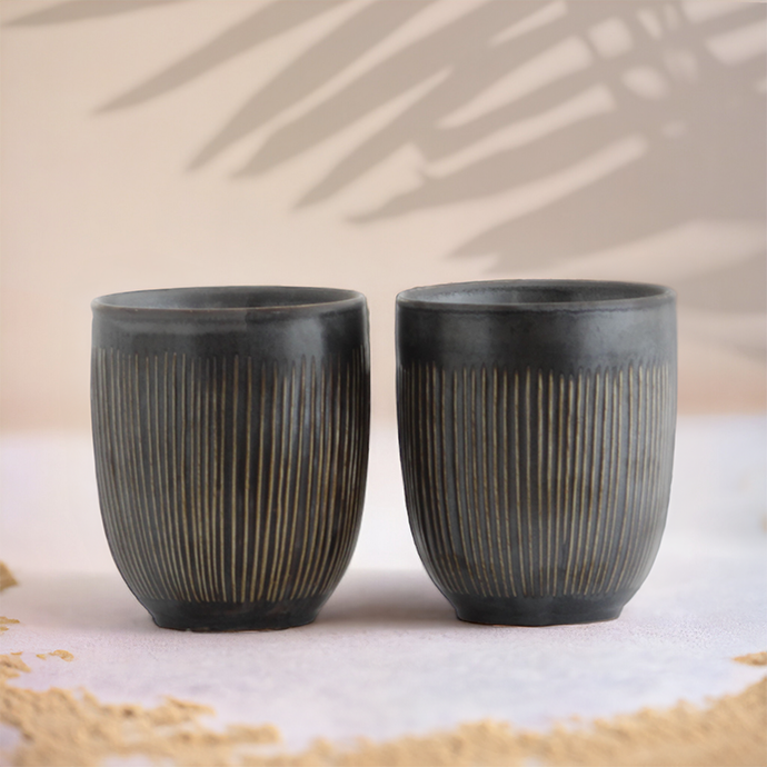 Ceramiczne naczynia o naturalnym, brązowym i szarym kolorze są dodatkową, oryginalną ozdobą.